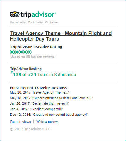 TripAdvisor Multiple Award winning company